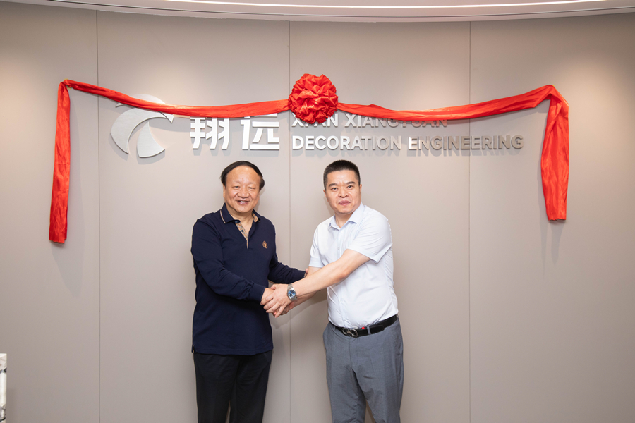 陜西省建筑裝飾協會鄭建鋼會長、翔遠董事長董志遠先生共同揭幕