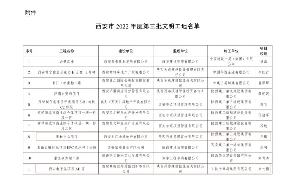 祝賀我司 參與施工的正和中心項目、西安電子谷AE區(qū)項目獲得西安市2022年度第三期“文明工地”稱號。