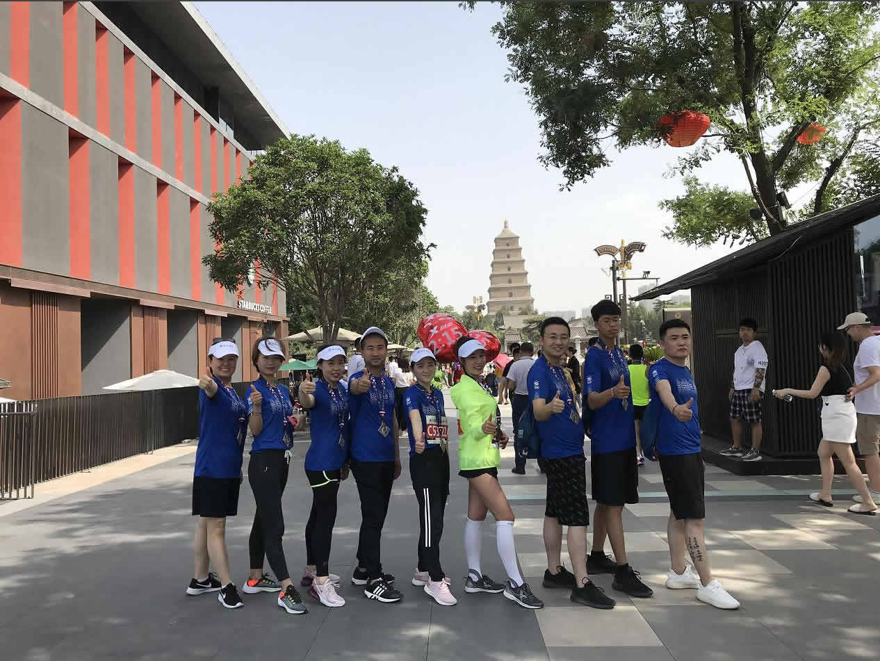為豐富員工業余文化生活,增強團隊凝聚力,展現公司員工努力拼搏、堅持不懈的精神面貌,公司組織員工參加“2019西安曲江(西航鋁業)國際半程馬拉松”活動。活動一經開展便得到公司員工的大力支持,員工紛紛積極報名參加,公司特別跟大賽組委會爭取了9個“歡樂跑”名額,1名員工參加半程馬拉松活動的領跑。未報上名的員工作為本次活動的啦啦隊成員在公司領導的帶領下,為參賽者助威加油。
