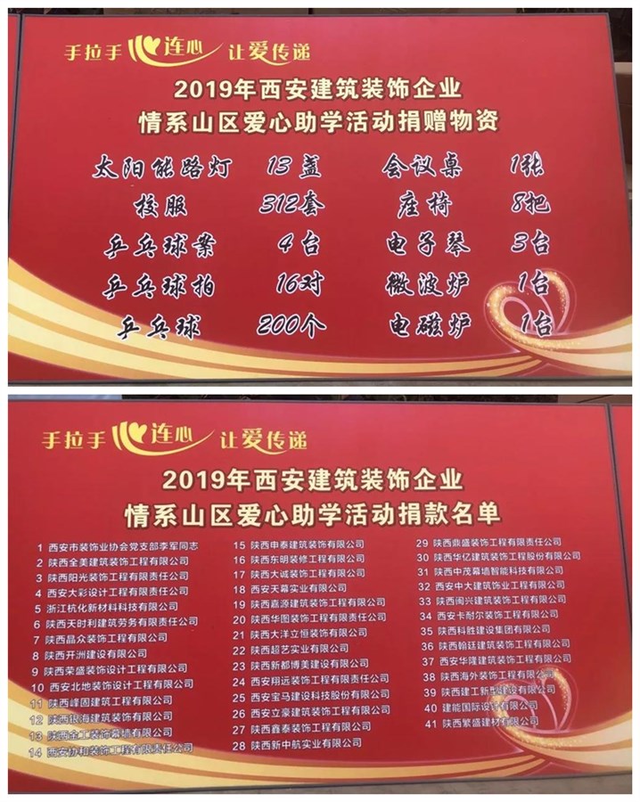 11月22日,西安市建筑裝飾業協會“情系山區·愛心助學”活動在安康市譚壩鎮九年制學校開展。西安翔遠裝飾工程有限責任公司愛心代表同西安市建筑裝飾業協會的41家愛心企業80余位愛心代表們一同參加活動。