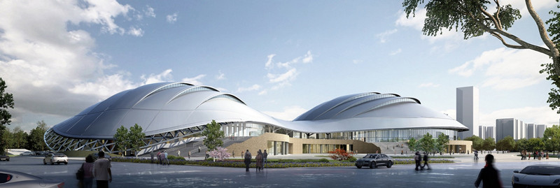 陜西奧體中心體育館位于西安市奧林匹克體育中心用地的東北部,東臨唐延路、西貼體育中心主路,總建筑面積72450平方米(其中地上建筑面積約為38750平米,地下建筑面積約為33700平米);觀眾總坐席數約為7048座(其中固定座椅4496座,活動座椅2552座)。總建筑造價約4.6億元。承擔著十四屆全運會中排球比賽和擊劍比賽,且作為全運會閉幕式的備用場館使用。