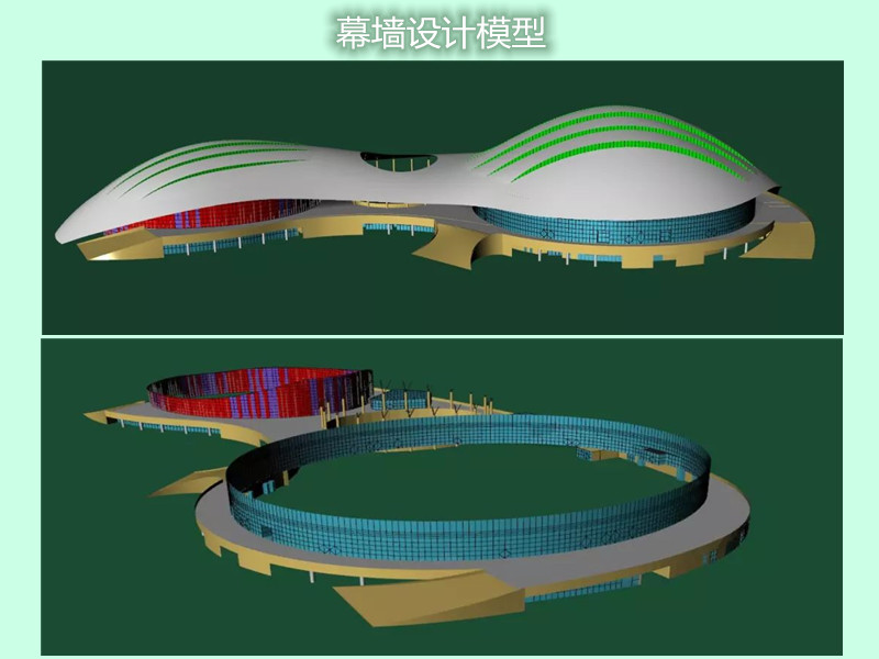 陜西奧體中心體育館為省級重點項目,質量要求為“魯班獎”。我司參與承建陜西奧體中心體育館項目外幕墻工程,幕墻面積約17000平方米。包括半隱框玻璃幕墻、隱框幕墻、鋁板幕墻、電動開窗、車道雨棚等子項。建筑多為曲面,定位復雜,幕墻立面與球形屋面交接部位高低起伏大且非規則形狀;屋面網架結構跨度較大,風壓作用變形對立面幕墻影響大;曲線形狀且平面尺度大、收邊收口多。