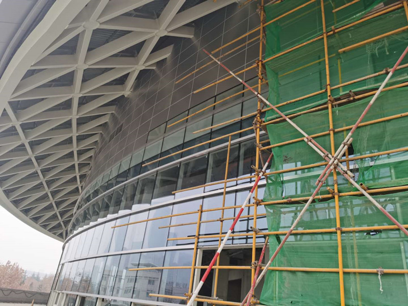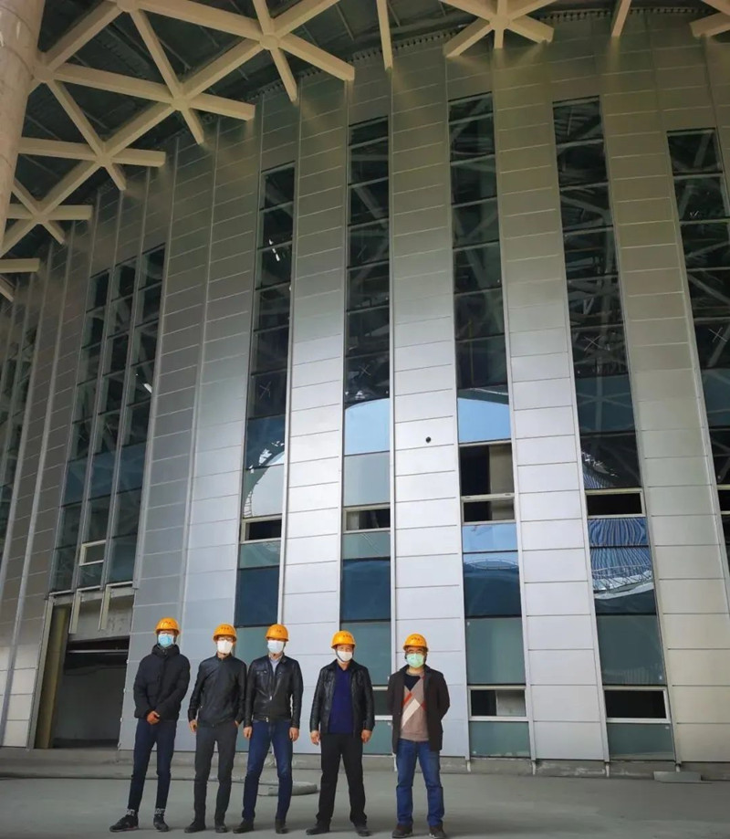 自復工復產以來,公司項目管理團隊抓質量、保安全、有條不紊地趕進度。截止目前,據現場報告,訓練館幕墻安裝完成97%,比賽館幕墻安裝完成80%,屋面采光頂、咖啡館、茶室、汽車坡道、首層和地下室等正井井有條地安排施工,預計2020年4月底完成幕墻施工工作。